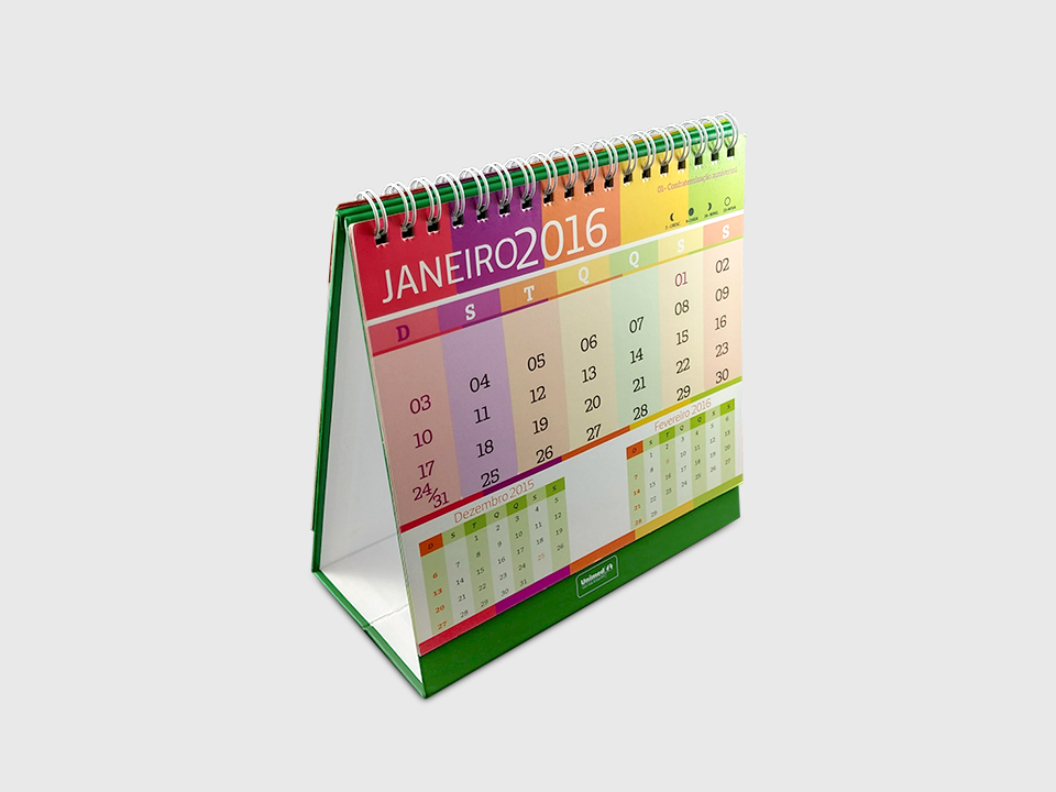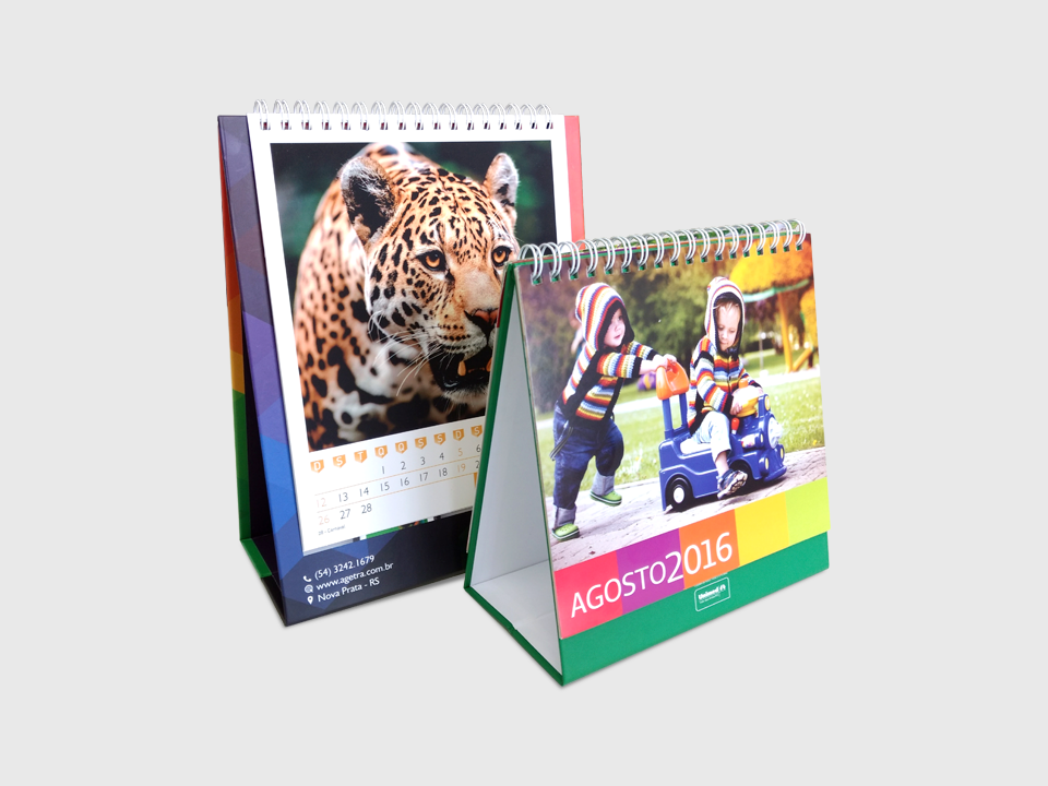 Quando o calendário é de qualidade, o cliente lembra de você o ano inteiro. Produzimos todo o tipo de calendários: de mesa, de parede nos formatos e acabamentos que você escolher. Nosso maquinário proporciona agilidade e excelente acabamento mesmo em formatos especiais.